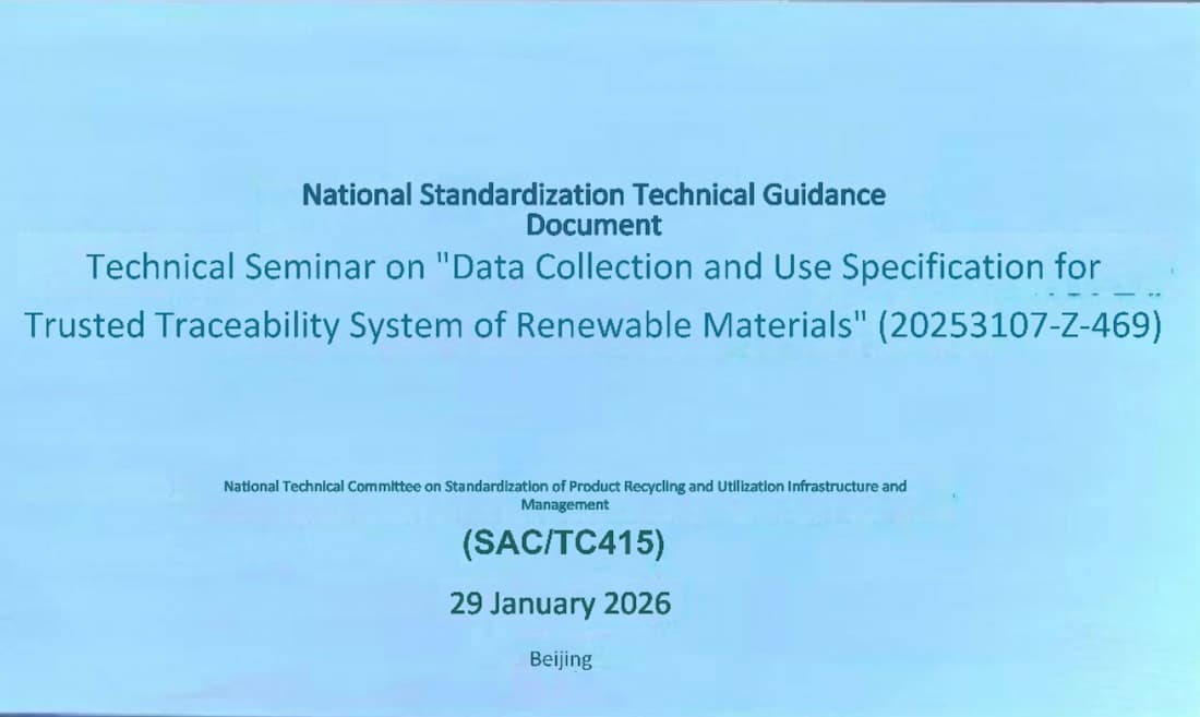 "Geri Dönüştürülmüş Malzemeler İçin Güvenilir Bir İzlenebilirlik Sistemine Yönelik Veri Toplama ve Kullanım Spesifikasyonları" konulu ulusal standart teknik semineri 29 Ocak 2026'da Pekin'de düzenlendi.