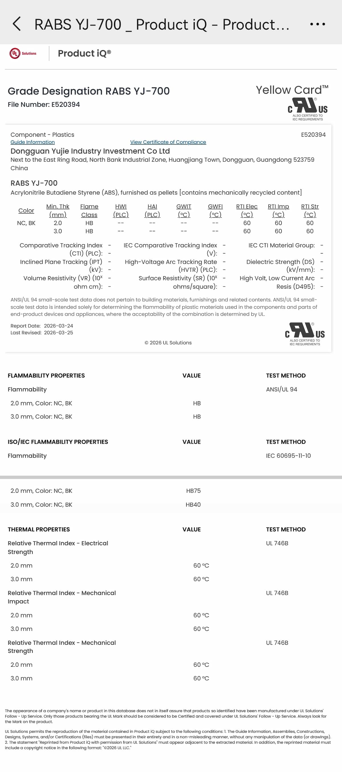 Yujie Industry, profesyonel ve yüksek kaliteli PCR yenilikçi modifiye plastikler sağlamaya kendini adamıştır. #RABS #PCR #UL 94 sarı kart #UL sertifikası