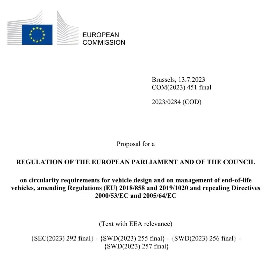 13 Temmuz 2023'te Avrupa Komisyonu, kullanım ömrünü tamamlamış araçlar (ELV'ler) hakkında bir düzenleme önerisi yayınladı. Avrupa Yeşil Mutabakatı ve Döngüsel Ekonomi Eylem Planı'na göre, ELV önerisi, kullanım ömrünü tamamlamış araçlarla ilgili mevcut iki direktifi (2000/53/EC ve 2005/64/EC sayılı direktifler) temel alarak bunların yerini alacaktır. Öneride, yeni otomobillerde geri dönüştürülmüş malzeme kullanımının artırılması ve yeni otomobillerin en az %25 oranında geri dönüştürülmüş plastik içermesi gerektiği belirtiliyor.